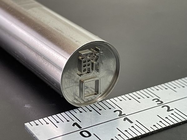 - 「脱ハンコ」が進む世の中ですが、SUS304にて印鑑の掘り込み加工サンプルです。