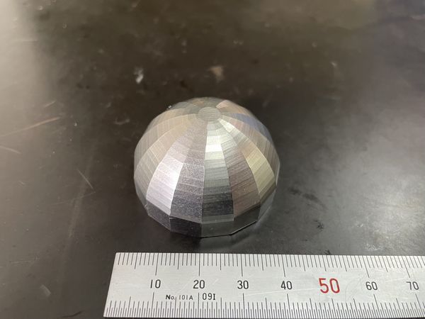- 外周は汎用旋盤にてアヤ目ローレット後マシニングにてフル削り出し。